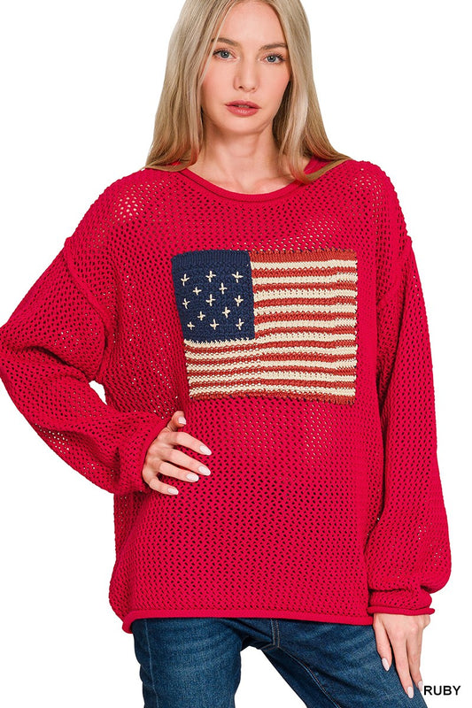 AMERICAN FLAG CAP SLEEVE OPEN STITCH SUMMER SWEATER