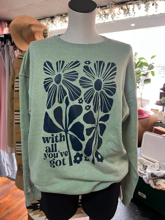 CREWNECK POCKET SHORT SLEEVE SWEATER (GREEN + CARAMEL COLORS)