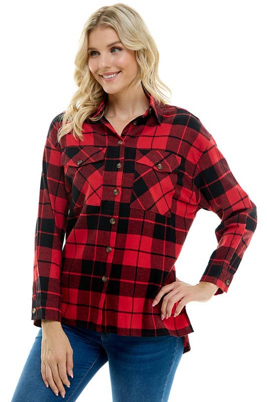 RED WOMEN'S OVERSIZED PLAID SHIRT