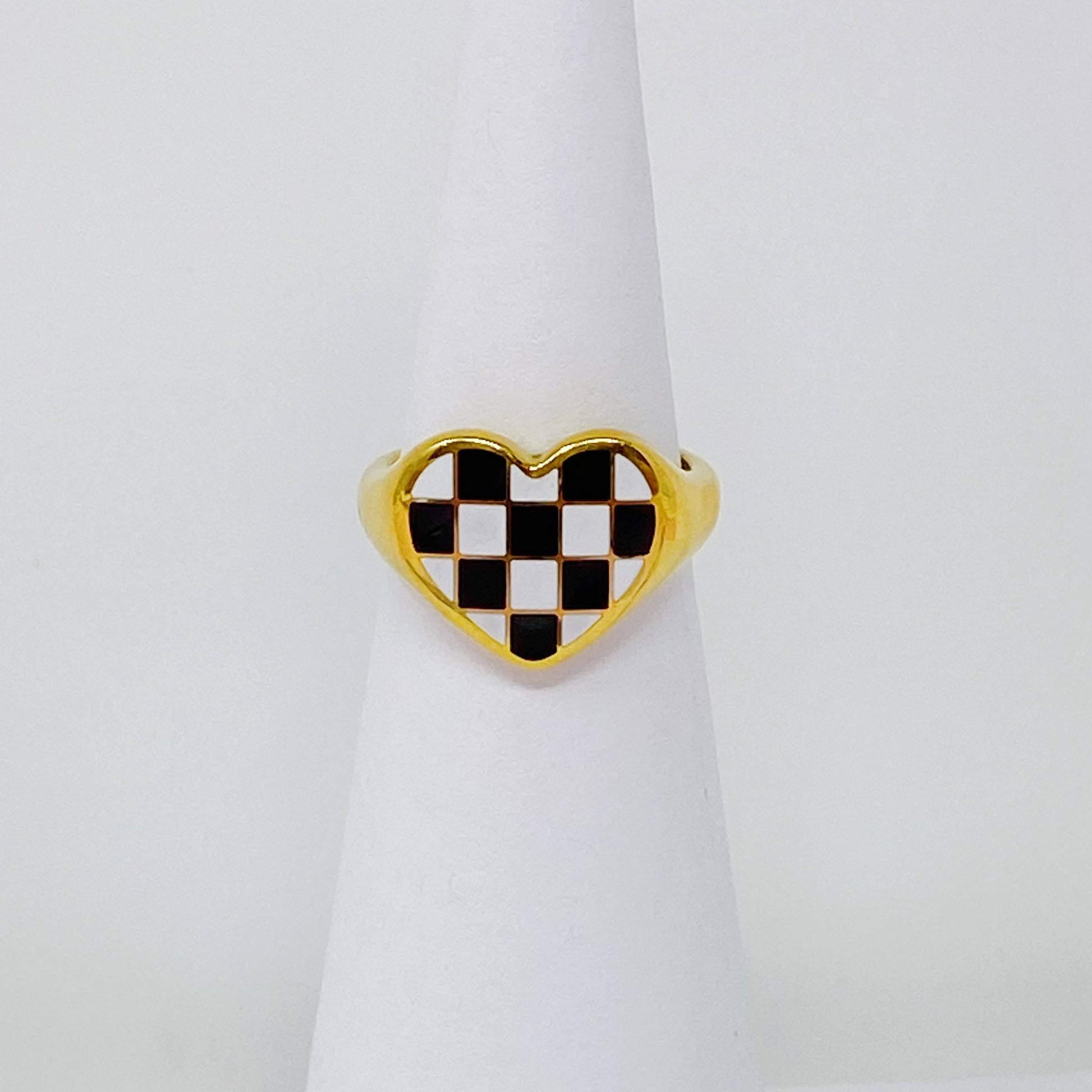 CHECKERED HEART SIGNET RING