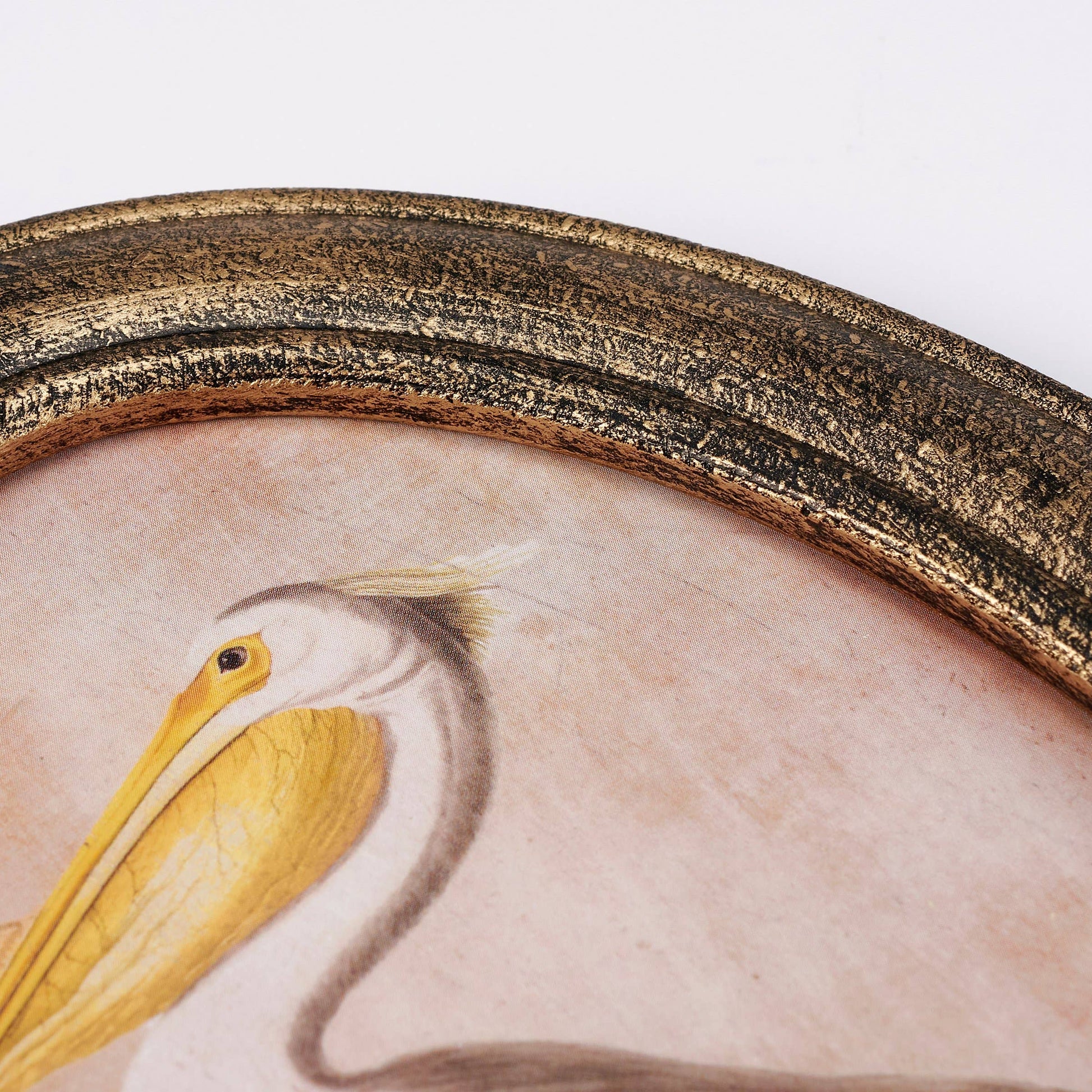 A hanging décor piece from our Beach Collection displaying vintage art of a pelican portrait. Rustic frame features oval shape and natural wood with complementing antique bronze finish. Our hanging pelican décor is easy to hang for display via attached sawtooth hanger. A vintage beach-themed home accent perfect for everyday display.